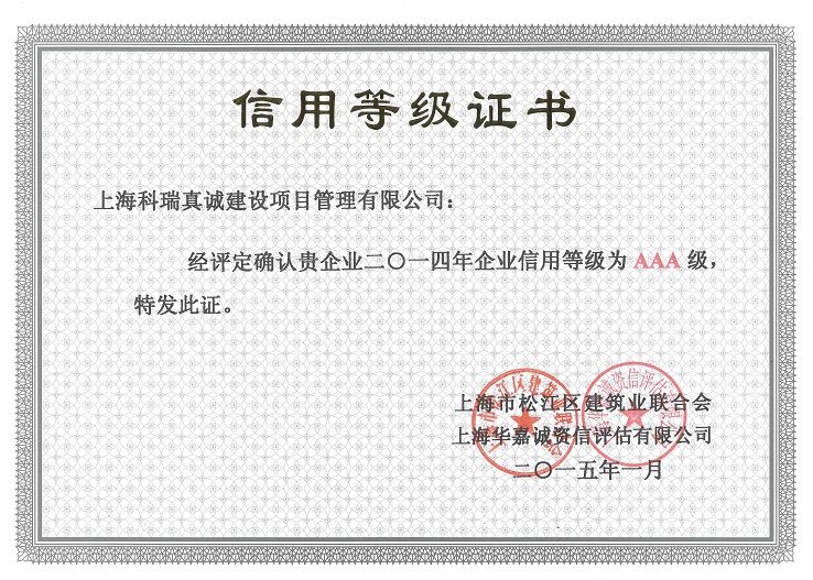 日前,公司派员参加区建筑业联合会召开的第六届第三次会员大会暨2015年年会,全区上百家会员单位参加会议。在2014年区建筑行业诚信企业评选中,经社会第三方评估,相关建设行政管理职能部门专家会审、公示后,公司获区建筑行业AAA诚信企业。