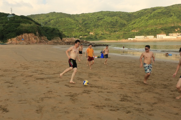 8月6日早上04:30前往六井潭景区观海上日出,很遗憾我因孩子小的缘故没去成,只能等待着看同事拍回来的照片解解渴。下午同样是休闲的沙滩活动,看着同事们激烈的沙滩足球,陪孩子堆堆沙堡,拾贝壳和小螃蟹,欣赏傍晚时分被晚霞染红的沙滩和落日余晖下同事们一张张可爱的笑脸,晚餐后大家一起阳台上观星看电影,乐趣多多……