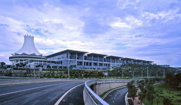 广西南宁国际会议展览中心为中国—东盟博览会的永久主展馆,由德国GMP和原广西建筑综合设计研究院(现广西华蓝设计集团有限公司)合作设计。主建筑设计独具匠心,构思巧妙,依山而建,气势恢宏。在最初的初步设计成果中,因考虑展厅大跨度荷载需要,结构选型为预应力结构体系,展厅内部保留了若干柱子。经由多名会展专家共同讨论商议后,提出了去掉二层展厅柱子的修改方案,为后期运营中举办类似游艇类展览等对空间尺度有要求的展览需求保留了更多的可能性和灵活性。