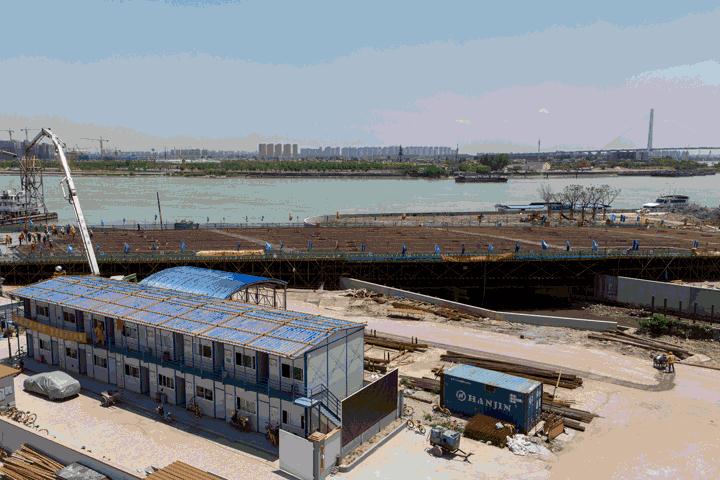 近期,西岸贯通工程的稳固推进,不断取得阶段性成果。5月15日,梦中心段800米防汛墙改造工程实现结构贯通,其中约680米岸线采用两级挡墙,其余120米采用一级挡墙,为实现6月底沿江区域开放奠定良好基础。自今年2月15日开工以来,西岸贯通的各参建方积极配合,努力克服了诸多困难,例如预制桩供货困难、邻近梦中心基坑且地质条件复杂、不可预见问题较多、施工难度大等工程难题。通过多方的精细化施工组织,西岸确保了按期贯通开放。