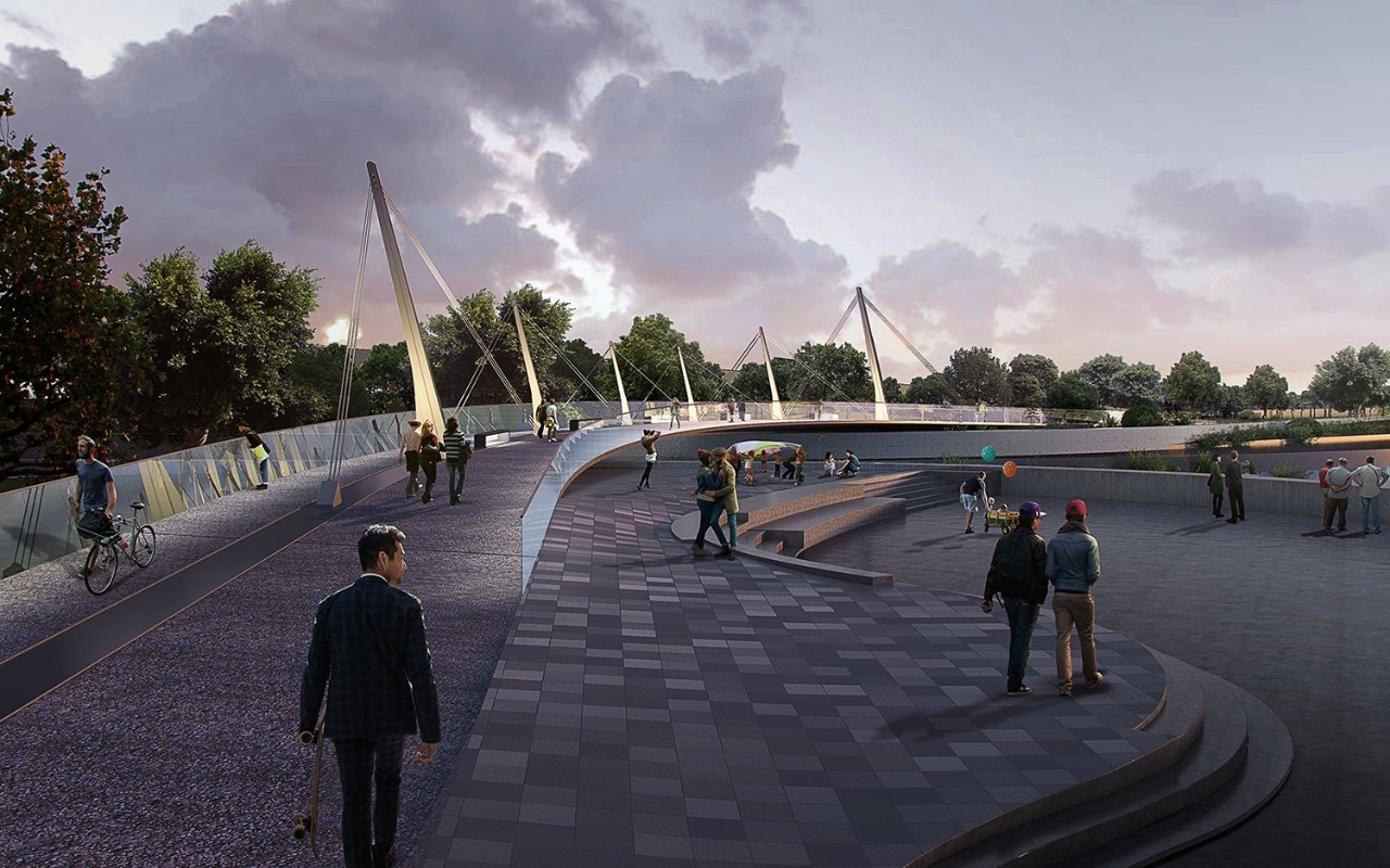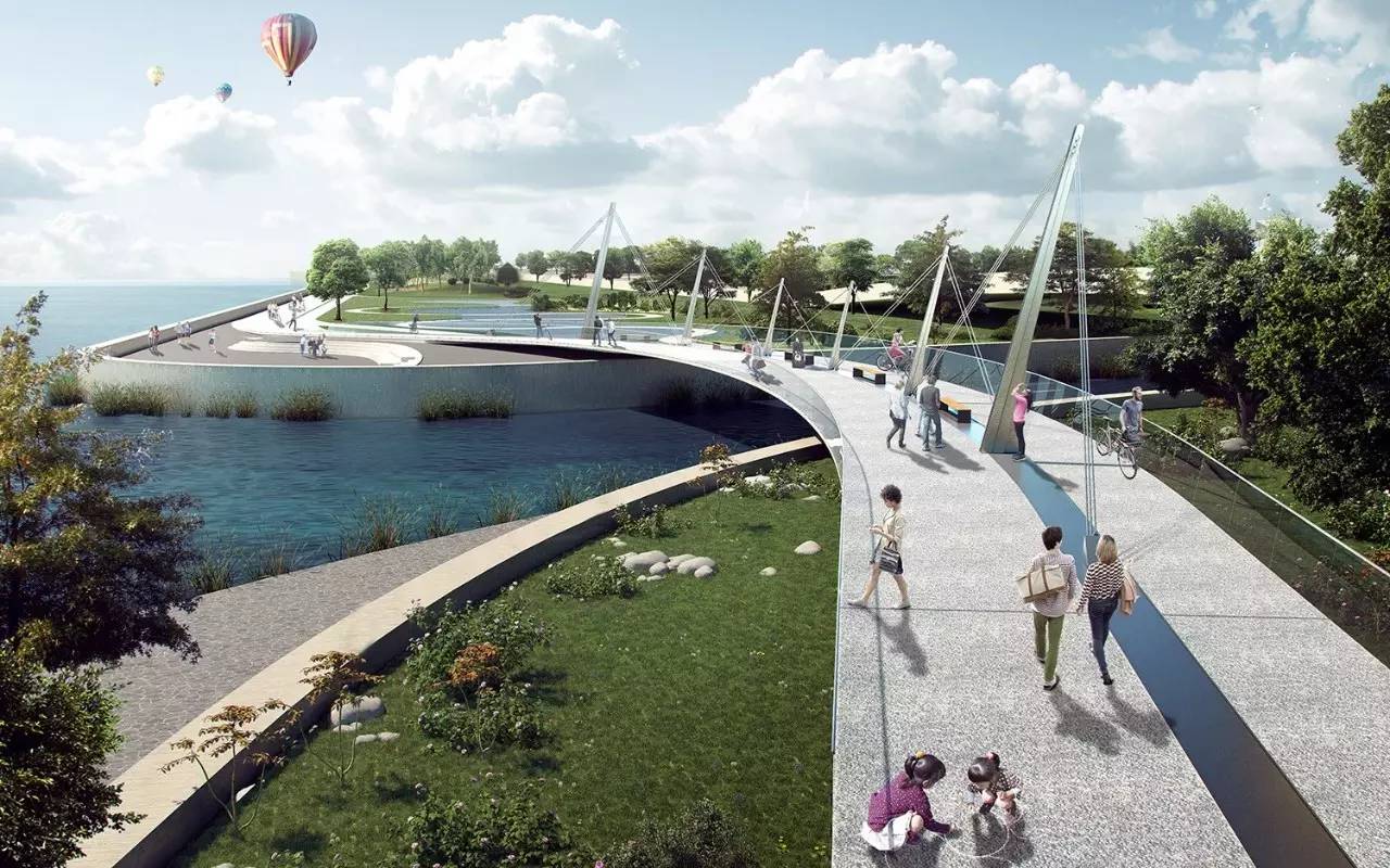 提到张家塘港桥,它可是西岸贯通中一座极其重要的人行景观桥。它将连通西岸公共开放空间南段湿地板块和森林板块,是贯通沿江开放空间亲水徒步路线的关键节点。