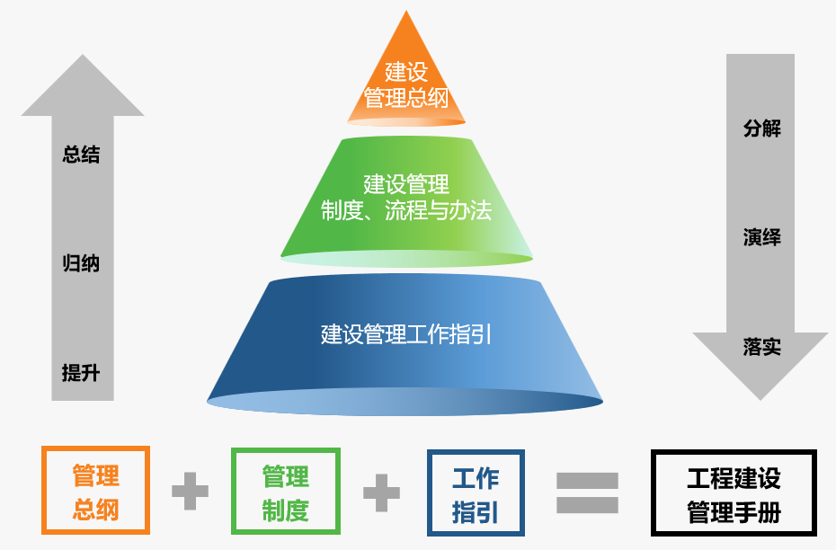 课题组根据调研结果,结合研究院近年来在重大工程建设管理领域取得的研究成果,参考国内外重大工程建设的最新进展和先进管理理念,以项目导向、问题导向和需求导向为原则,总结了一批海南水电建设管理成功经验,并提出了构建系统化、结构化、标准化的建设管理制度体系方案。