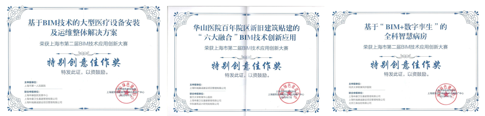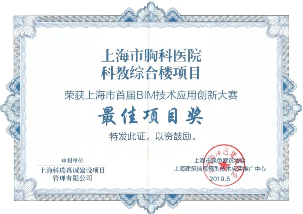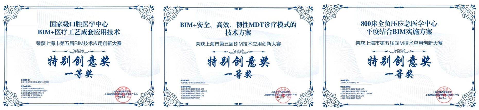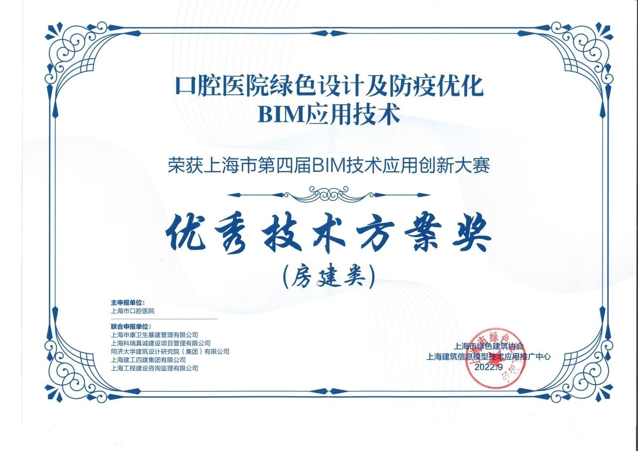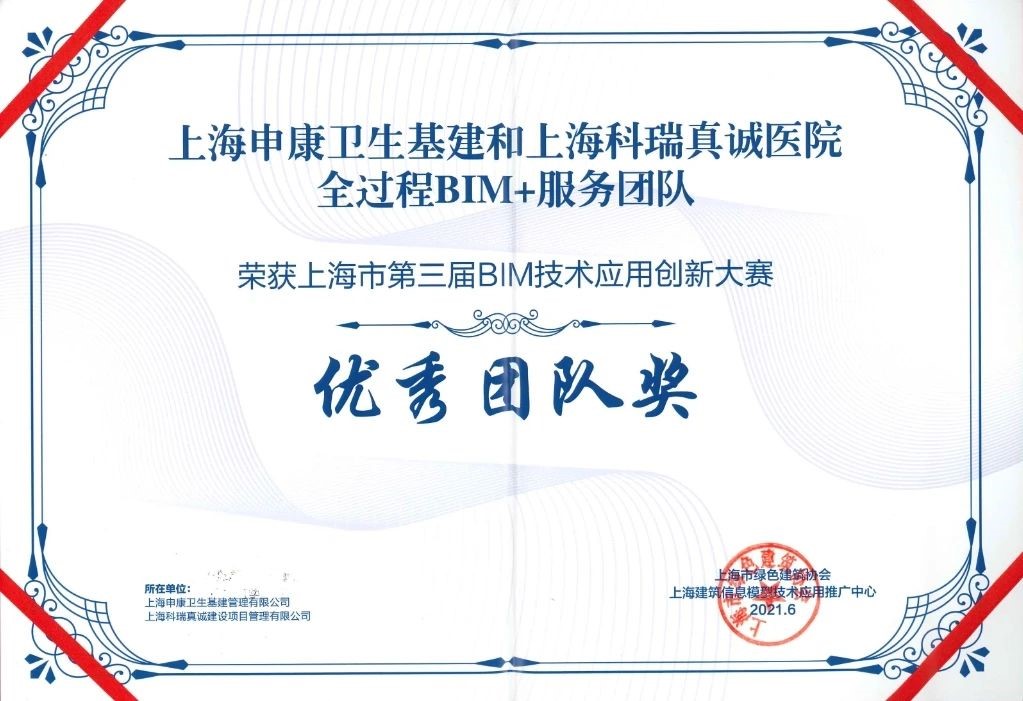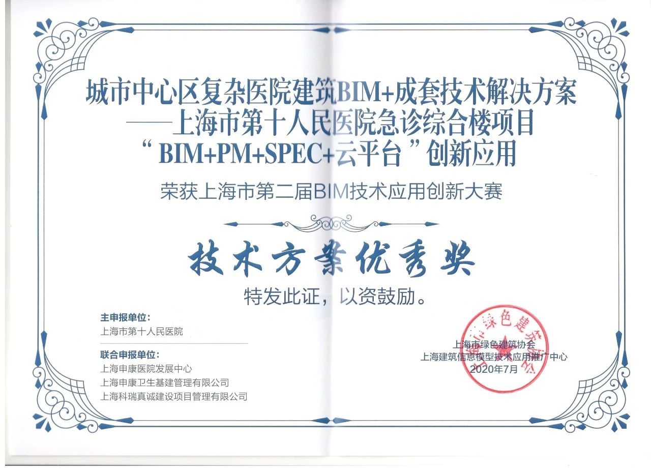 由上海市住房和城乡建设管理委员会、上海市绿色建筑协会、上海建筑信息模型技术应用推广中心共同举办的上海市第五届BIM技术应用创新大赛经过多轮评审,最终产生项目案例奖99项、特别创意奖24项、优秀个人奖30项。我司BIM团队联合申报项目上海交通大学医学院附属瑞金医院北部院区二期扩建工程、上海市精神卫生中心重性精神疾病临床诊疗中心项目分别斩获房项目案例奖房建类一等奖、三等奖。800床全负压应急医学中心平疫结合BIM实施方案、国家级口腔医学中心BIM+医疗工艺成套应用技术和BIM+安全、高效、韧性MDT诊疗模式的技术方案获特别创意奖一等奖。