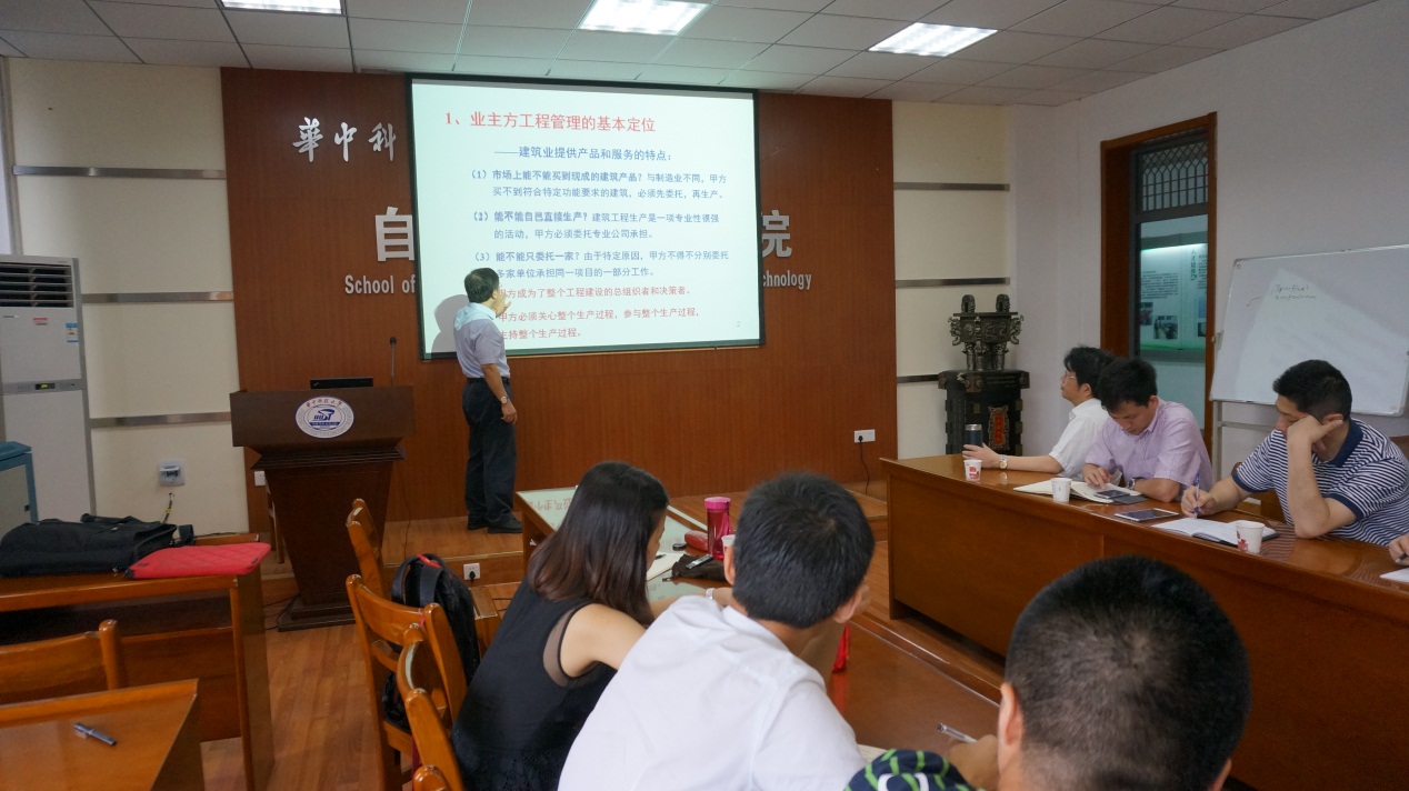 24日上午,乐云教授为做了题为《重大基础设施工程现场管理定位》的学术报告,提出了以业主方工程管理作为现场安全和质量研究对象的建议,指出了由我校负责的“组织”研究和由华科研究团队负责的“现场管理”研究的紧密联系,并进一步深化了两校课题合作的研究方案。之后,参会人员共同参观了华科自动化研究团队的仿真实验室,包括“国家国民经济动员仿真演练研究中心”和“物流仿真研究实验室”等,自动化学院老师详细介绍了目前各系统的研究和应用现状,以及未来的研究计划。