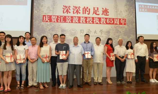 座谈会上还举行了“庆贺江景波教授执教65周年纪念文集首发式”。该纪念文集分三册,分别为《深深的足迹——江景波教授与同济大学的发展》、《良师·诤友——江景波参政议政文集》、《光影·记忆——江景波教授珍贵影像记录》。文集由同济大学出版社出版发行。