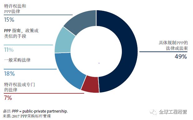 最后,11%的经济体主要通过指南,政策或类似手段(澳大利亚,加拿大,中国,印度,牙买加,马来西亚,新加坡,南非和斯里兰卡)来规范PPP。“普通法”体系的经济体的情况大多如此。规制PPP的各种方法之间的界限有时是模糊的。例如,在英国,指南和政策文件载有大量关于PPP开发的规定,但公共采购法也同样适用于PPP采购程序。