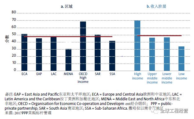 PPP项目采购标杆管理对不同地区和收入水平小组的评分(分数1–100)
