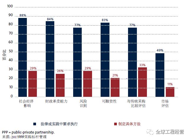 在82个经济体中,77%的经济体需要在PPP和传统采购之间进行比较评估。但是,只有33%的国家制定了详细的评估编制方法。