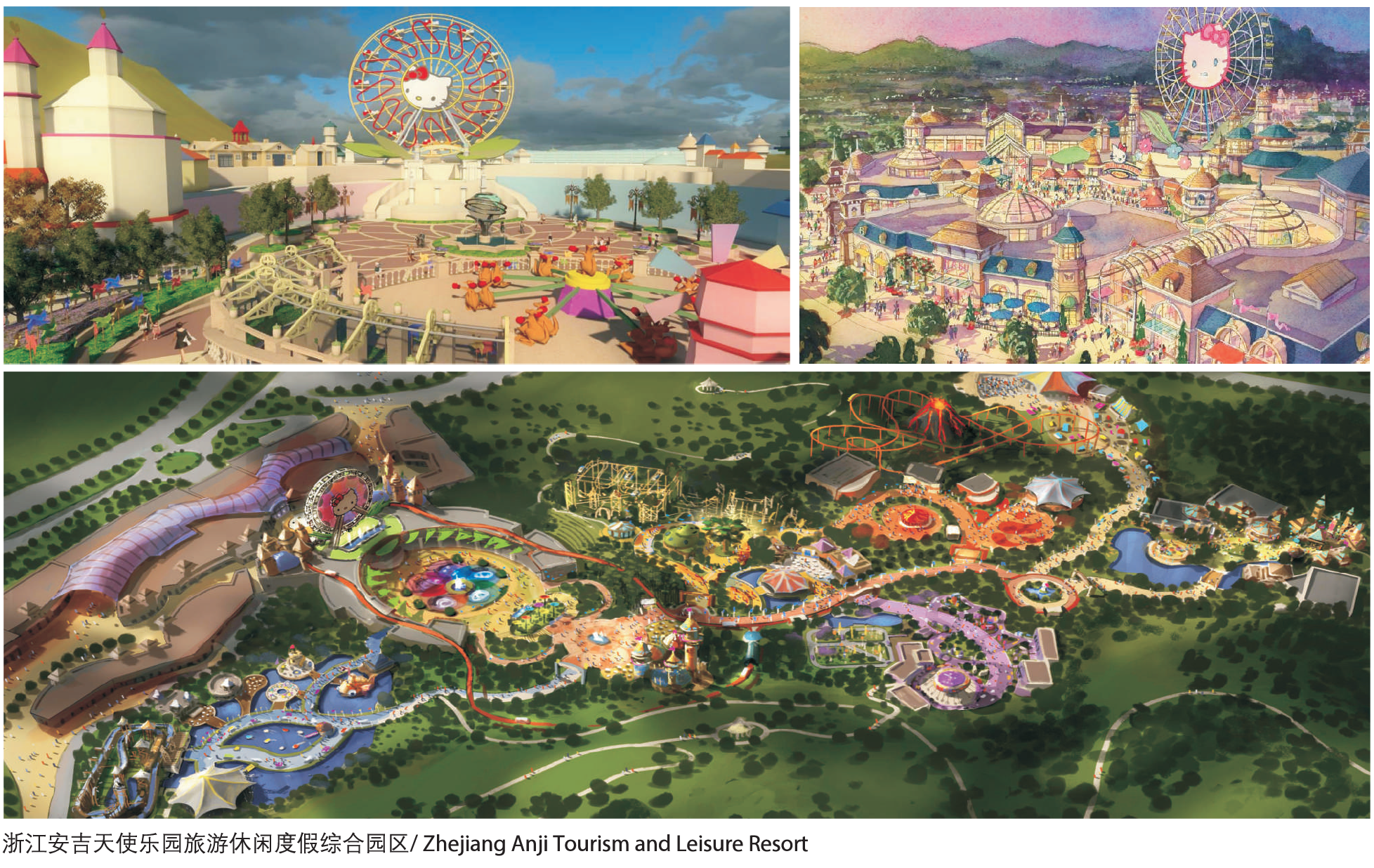 项目简介:浙江安吉旅游休闲综合度假区群体工程总规划范围19.5平方公里,建设用地规模约3平方公里(4500亩),主要包括Hello Kitty家园、主题城堡酒店和快捷酒店三个子项目。其中Hello Kitty家园总建筑面积55754平方米,总投资造价约16亿,安吉银润hello kitty家园是全球唯一一家日本Hello Kitty主题的户外主题乐园。
